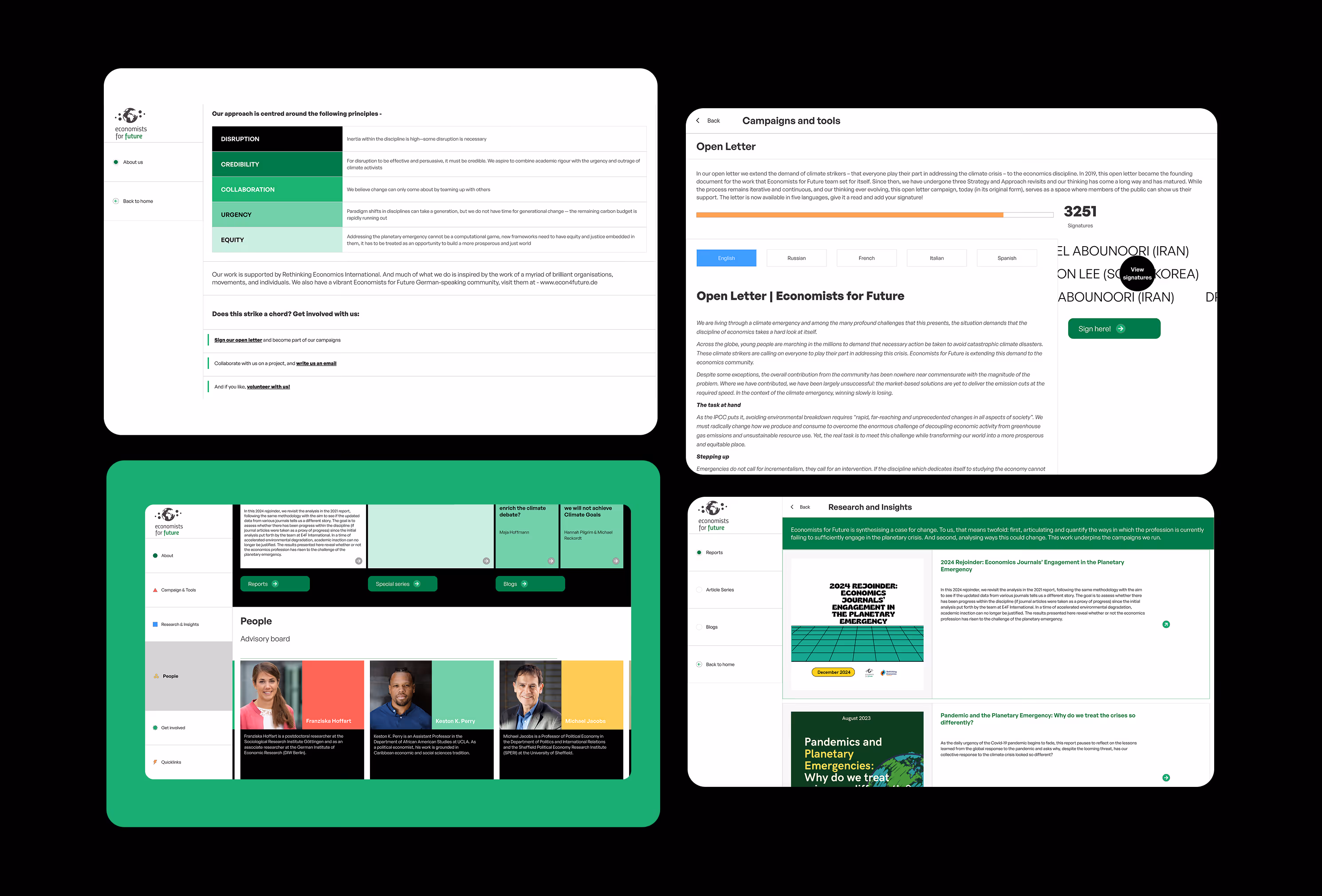 Economists for Future (E4F) is an advocacy group of young economists and academics working to integrate environmental concerns into economic thought. While their mission is vital, their website wasn't intuitive or engaging enough for their primary audience of students and academics. Content was difficult for their volunteer team to manage, and the site's reliability was a concern. Sketchboat stepped in to deliver a comprehensive website redesign focused on user experience and engagement. The new, accessible website features a simplified content management system, enhanced branding, and optimized calls-to-action to better serve E4F’s mission and community.