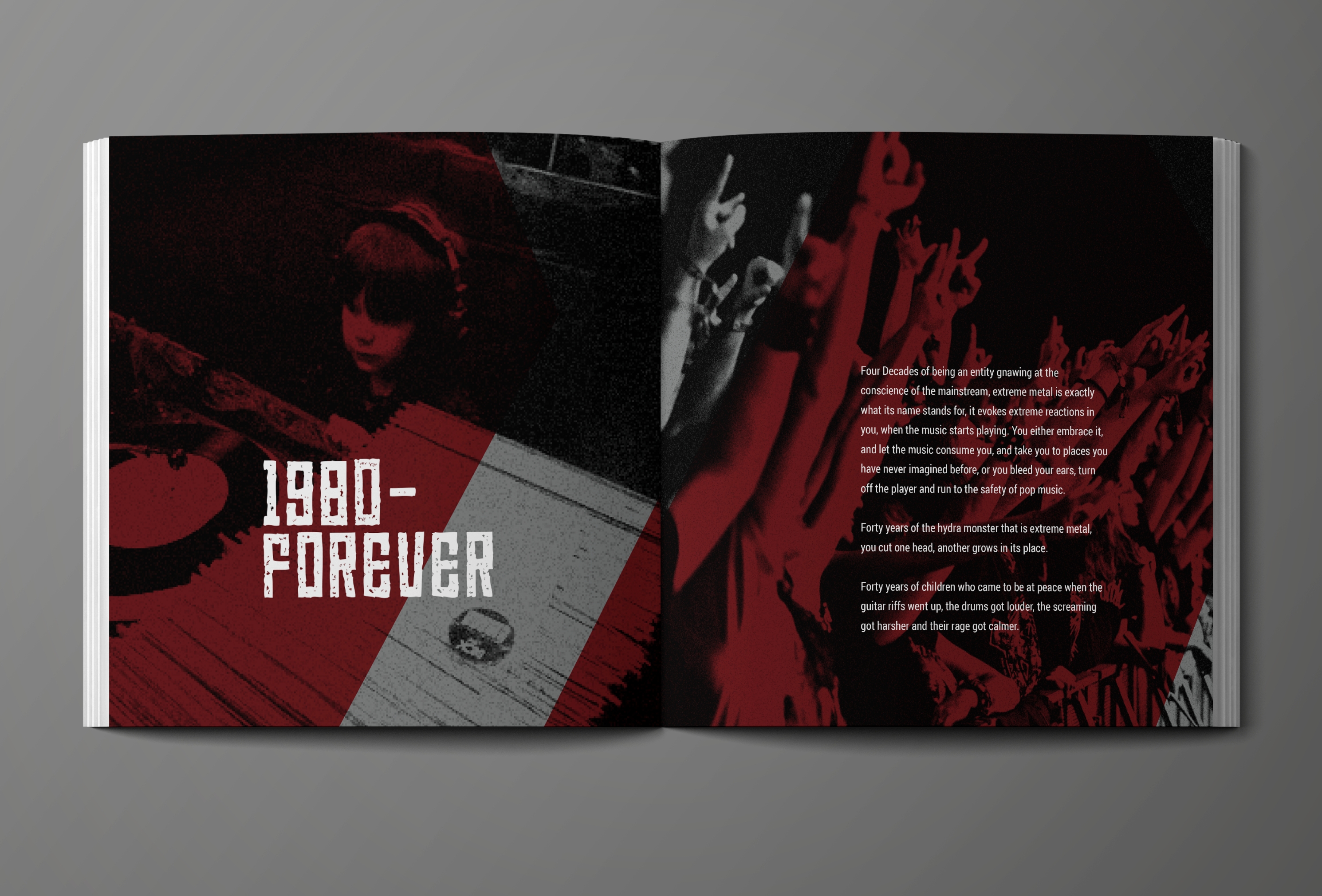 The exciting thing about this project is that the subject lends itself to design extremities like very few others. Metal as a genre has always been unafraid of dismissing all kinds of conventions in favour of the extreme and the intense.